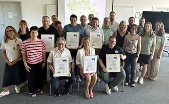 Bürgermeisterin, Bürgermeister, Jugendbeauftragte und Engagierte der Jugendpflegen aus Allendorf (Lumda), Biebertal, Fernwald, Grünberg, Heuchelheim und Hungen haben von Kreis-Jugenddezernent Frank Ide die Urkunden zur Teilnahme am Projekt „Jugendgerechte Städte und Gemeinden - jugendgerechter Landkreis Gießen“ entgegengenommen.