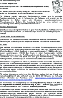 Vorheriger Artikel: Stellenausschreibung Bürgerbüro