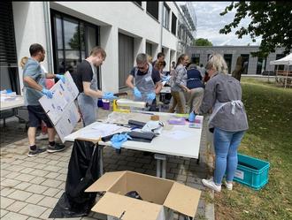 Notfallübung zur Rettung historischen Archivguts: Archivpersonal aus den Kreiskommunen lernte in der Volkshochschule in Lich den richtigen und raschen Umgang mit durchnässten Dokumenten. (Foto: Landkreis Gießen)