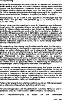 Die angeordnete Untersagung des Gemeingebrauchs sowie des Eigentümer- und Anliegergebrauchs ist erforderlich, angemessen und geeignet, um die Gewässer vor weiteren Störungen durch eine Verringerung der Wasserführung zu schützen und eine Verschlechterung der durch die langanhaltende extreme Trockenheit kritischen Gewässerzustände zu vermeiden und damit die Tier- und Pflanzenwelt in den Gewässern vor Schaden zu bewahren. Die Untersagung bezweckt ferner, vorsorglich die Lebensgrundlage Wasser, wasserökologische Belange sowie das Wohl der Allgemeinheit zu schützen und zu erhalten. Sie ist ein geeignetes Mittel zur Absicherung der ökologischen, wassermengen- und wassergütewirtschaftlichen Anforderungen.