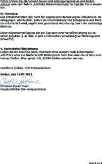 Diese Allgemeinverfügung ist zudem auf der Internetseite (https://www.lkgi.de/umwelt-bauen-und-entsorgung/wasser-und-boden-schutz) unter der Rubrik „Amtliche Bekanntmachung“ in digitaler Form einsehbar.
