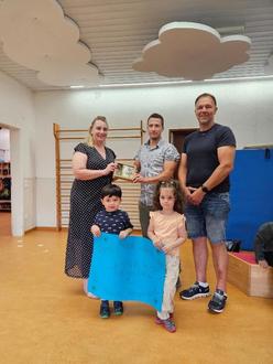 von links: Fr. Jäger (Atemzeit), Hr. Kehm, Hr. Dreyer, vorne: Elias R. und Alejna D.
