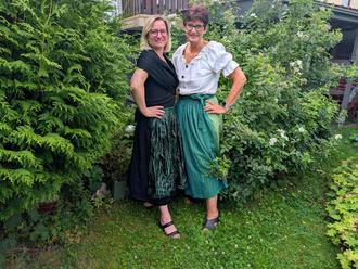 Wenn der Schmaadleckermarkt in Lollar seine Türen öffnet, darf eines nicht fehlen: unsere beiden Marktfrauen Christine und Beate.