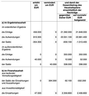 Änderungen bezüglich der über- und außerplanmäßigen Aufwendungen und Auszahlungen werden nicht beschlossen.