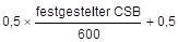| (2) | Gebührenmaßstab für das Einleiten nicht häuslichen Schmutzwassers ist der Frischwasserverbrauch auf dem angeschlossenen Grundstück unter Berücksichtigung des Verschmutzungsgrads. Der Verschmutzungsgrad wird grundsätzlich durch Stichproben – bei vorhandenen Teilströmen in diesen - ermittelt und als chemischer Sauerstoffbedarf aus der nicht abgesetzten, homogenisierten Probe (CSB) nach DIN 38409-H41 (Ausgabe Dezember 1980) dargestellt.Die Gebühr beträgt pro m³ Frischwasserverbrauch 2,36 EUR bei einem CSB bis 600 mg/l; bei einem höheren CSB wird die Gebühr vervielfacht mit dem Ergebnis der Formel |