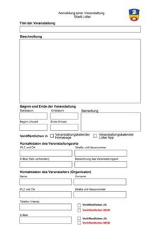 Die Veranstaltungstermine für das Jahr 2025 können bei der Stadtverwaltung eingereicht werden. Dazu benötigen wir die folgenden Angaben: