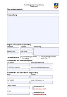 Die Veranstaltungstermine für das Jahr 2026 können bei der Stadtverwaltung eingereicht werden. Dazu benötigen wir die folgenden Angaben: