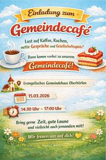 | 14:30 Uhr | Gemeindecafé im ev. Gemeindehaus Oberhörlen |