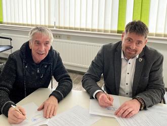 Paul Schmelter und Bürgermeister Gernot Wege bei Unterzeichnung des Pachtvertrages (Foto - Gemeinde Steffenberg)