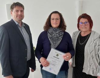 Seit dem 01.04.2023 ist Frau Luy wieder als Verwaltungsfachangestellte in der Hauptverwaltung der Gemeinde Steffenberg beschäftigt und erhielt nun von Bürgermeister Gernot Wege eine neue Ernennungsurkunde.