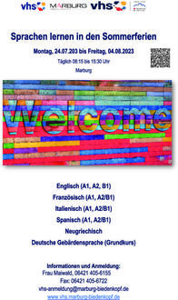 Bei der VHS sind die Planungen für die kommenden Sommerferien schon in vollem Gange - auch in diesem Jahr werden wieder die beliebten Sprachintensivkurse in Kooperation mit der vhs Stadt Marburg angeboten.