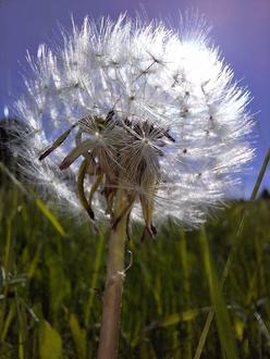 Pusteblume fliegt so weit, trägt Träume fort in Windeskleid. Sanft erhebt sie sich empor, tanzt durch Wolken, fliegt hervor.