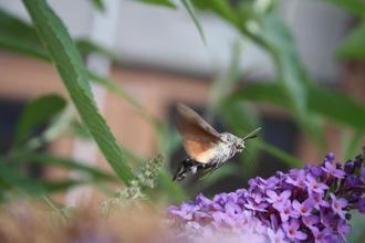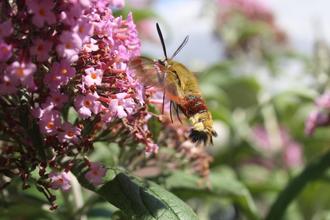 Ein seltener Schmetterling zu Besuch in Niedereisenhausens Gärten (Foto Birgit Becker). Hummelkolibris (Hemaris thysbe) stammen aus Nord Amerika und sind laut Nabu in unseren Breiten selten vorkommend.