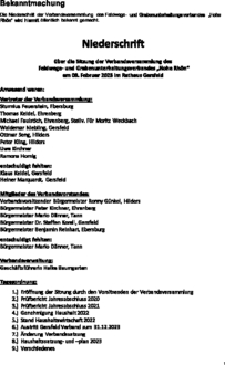 Die Niederschrift der Verbandsversammlung des Feldwege- und Grabenunterhaltungsverbandes „Hohe