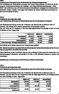 Die Verbandsversammlung nimmt den Prüfbericht der Revision des Landkreises Fulda zur Kenntnis. Das Jahr 2021 hat zum Vergleich zu 2020 wie folgt abgeschlossen, die Beträge wurden auf volle €-Beträge auf bzw. abgerundet: