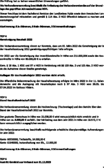 Die Verbandsversammlung nimmt die Hochrechnung (Tischvorlage) und den Bericht über den Stand der Haushaltswirtschaft 2022 zur Kenntnis.
