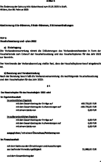 Aufgrund der §§ 9 und 38 des Gesetzes über kommunale Gemeinschaftsarbeit (KGG) vom 19.12.1969 (GVBL. I. S. 307) hat die Verbandsversammlung des Feldwege- und Grabenunterhaltungsverbandes „Hohe Rhön“ in ihrer Sitzung am 19. Januar 2023 folgende Satzungsänderung beschlossen: