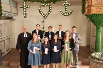 Acht Jugendliche wurden am 4. Mai in der festlich geschmückten Kirche in Neuswarts konfirmiert. Für alle Besucher war dieser Tag ein besonderes Fest. Als die Jugendlichen in die Kirche einzogen und dort eingesegnet wurden, war dies für die Eltern, Paten und Großeltern ein berührender Moment. Ihre Kinder werden erwachsen.