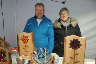 Gerhard und Barbara Weber sind mit ihrer Holzschnitzerei Weber in Hilders heimisch. Das Ehepaar ist mit seinen Arbeiten aus Tiffany-Glas und Holz das erste Mal auf dem „Handgemacht-Markt“ in Tann vertreten, doch es besitzt weitreichende Markt-Erfahrung - nicht zuletzt in der Organisation von Regionalmärkten. Denn Gerhard Weber ist Vorsitzender des Gewerbevereins „Wir für Hilders“ und als solcher verantwortlich für traditionelle Veranstaltungen im Ulstertal wie Michaelis- oder Licht’lmarkt.