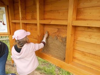 Lebendig geht es immer auf dem Spielplatz in Wendershausen zu aber nun soll auch Leben in das „Insektenhotel“ einziehen. Einzelne Wohnräume für Wildbienen und Co. sind schon bezugsfertig gemacht worden. Die Vorschulkinder des Evangelischen Kindergartens Tann hatten auf jeden Fall viel Freude bei der ersten Aktion mit Frau Fuß vom NABU. Eifrig wurden Röhren als Nisthilfen in Dosen eingegipst, verschieden große Löcher in große Buche-Baumscheiben gebohrt und ein Lehmfeld verschmiert. Bei einer weiteren Aktion werden noch Florfliegenkästen mit Unterstützung von Markus Herberich gebaut. Von den Kindern rot bemalt und mit Heu und Stroh befüllt, finden diese dann auch ihren Platz im Insektenhotel. Die Felder mit den Dosen-Nisthilfen warten noch auf Erweiterung. Aber tatsächlich werden hier schon erste Röhren als Nisthilfe benutzt und es gibt die Möglichkeit, dadurch rund um das Insektenhotel Wildbienen, Schlupfwespen, Hummeln und andere Insekten beobachten zu können. Wir wünschen allen Kindern und Erwachsenen viel Spaß beim Entdecken der „schützenswerten Insekten, ihrem neuen Wohnraum und der Natur“