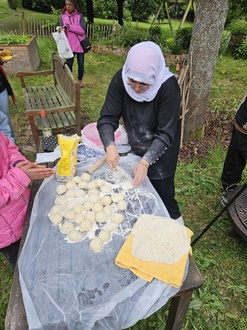 Ein besonderes Highlight war das gemeinsame Grillevent am verregneten Sonntag im Essbaren Garten. Trotz des unbeständigen Wetters versammelten sich zahlreiche Besucher:innen zu einem geselligen Ausklang der Veranstaltung. Die Bürgermeister persönlich standen am Grill und servierten Würstchen mit Brötchen, die sie großzügigerweise spendeten. Für alle Vegetarier:innen überraschte eine Ehrenamtliche der AWO spontan mit frischem Fladenbrot vom Grill – eine willkommene Stärkung für die gut gelaunten Gäste.