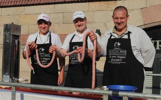 Beim manchem Feierabendmarkt ging es schon um die Wurst – zum Beispiel, als der Gasthof "Zur Krone" auf der Bühne dem Publikum verschiedene Bratwurstvariationen präsentierte. Mihms Bratwurst ist weit über das Rhönstädtchen hinaus bekannt, doch die Küche der alteingesessenen Tanner Gastwirtschaft hat weit mehr Raffinessen zu bieten. Davon können sich Marktbesucher immer wieder aufs Neue überzeugen. Inhaber Marcus Mihm und Chefkoch Christopher Fehn beantworten unsere Fragen.
