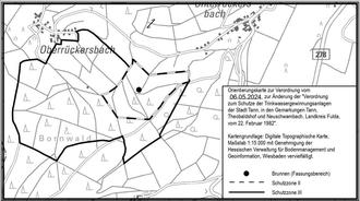Im Staatsanzeiger für das Land Hessen Nr. 27 vom 1. Juli 2024, S. 620 ff. wurde die Verordnung zur Änderung der „Verordnung zum Schutze der Trinkwassergewinnungsanlagen der Stadt Tann, in den Gemarkungen Tann, Theobaldshof und Neuschwambach, Landkreis Fulda, vom 22. Februar 1982“ vom 6. Mai 2024 verkündet. Das Wasserschutzgebiet für die Altschwambach-Quelle wurde aufgehoben. Die neuen Grenzen des Schutzgebietes für den TB Oberrückersbach sind aus der nachfolgenden topographischen Orientierungskarte zu ersehen.