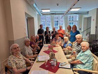 Erste Gäste des Tagespflege mit Mitarbeiterinnen, Vertretern der Kirchengemeinde und der Leitung der Diakoniesozialstation