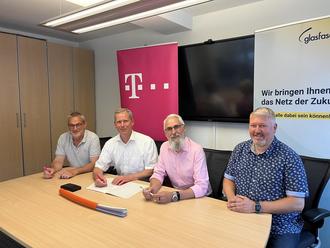 v.l.n.r.: Jürgen Schlereth, 1. Stadtrat, Mario Dänner, Bürgermeister, Harald Weber, GlasfaserPlus, Oliver Knöll, Regiomanager Telekom