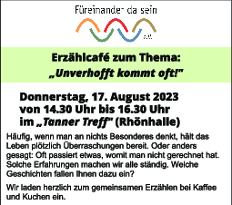 am 14. August 2023 von 09:00 bis 11:00 Uhr im Tanner Treff