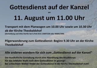 | 11:00 Uhr | Theobaldshof – „Kanzel“ | Pfarrer Klaus-Dieter Inerle |