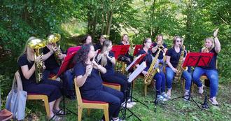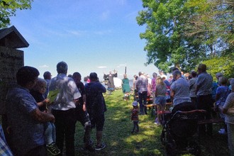 Hierher hat die Kirchengemeinde Theobaldshof zum Gottesdienst eingeladen. Liebevoll wurde der Platz gestaltet. Die Musik steuerte eine Abordnung des Musik Corps Tann (Rhön) e.V. bei.