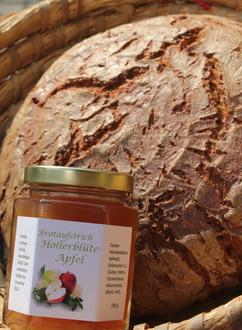 Kilian Kirchner: Vor allem unser Bauernbrot, das wir aus eigenem Getreide zweimal im Monat auf Vorbestellung und nun zusätzlich für die Markttage ganz frisch backen. Um 14 Uhr werden die Zwei- und Vierpfünder dafür aus dem Holzofen ausgeschossen. Außerdem gehören fruchtige Brotaufstriche zum Sortiment, beispielsweise Brombeere, Holunder, Johannisbeere, Kirsche, Apfel-Holunderblüte und Rhabarber-Vanille - alles, was der Garten über den Sommer so hergibt. Nächste Woche gibt es auch wieder meine Lieblingssorte Birne-Amaretto. Außerdem verkaufen wir naturtrüben Apfelsaft aus den Sorten Boskoop und Rheinischer Bohnapfel in 5-Liter-Boxen und 1-Liter Flaschen und haben am Mittwoch selbstangebaute Belana-Kartoffeln dabei.