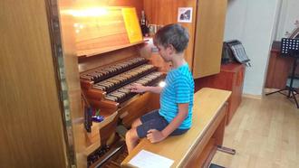 Tizian -8 Jahre- probiert sich an der Tanner Orgel