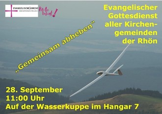 Auch in diesem Jahr feiern die Kirchengemeinden einen gemeinsamen Gottesdienst auf der Wasserkuppe. Der beginnt um 11.00 Uhr und steht unter dem Titel „Gemeinsam abheben“.