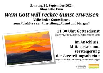 | Volkslieder-Gottesdienst zum Abschluss der Ausstellung „Abend und Morgen“ mit dem Kirchenchor Tann |