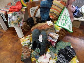 Weiterhin bieten wir neben den beliebten Filzschuhen bunte Schals, Bommelmützen, Handschuhe und -stulpen an.