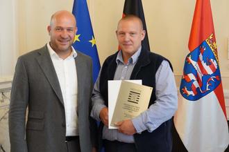 Landwirtschaftsminister Ingmar Jung mit Preisträger Marcus Mihm