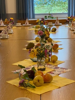 Dann deckten die Helferinnen und Helfer das Kuchenbuffet. Der Nachmittag wurde bei Kaffee, Kuchen und guten Gesprächen fortgesetzt. Kurz vor sechs Uhr machten sich dann auch die letzten Gäste auf den Heimweg und jeder war dankbar für die gemeinsame Zeit, die man erleben durfte.
