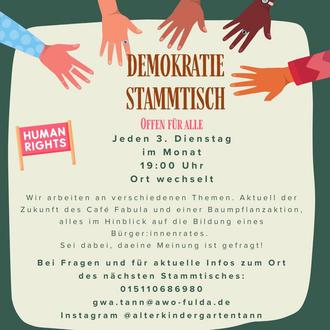 | Alter Kindergarten AWO Gemeinwesenprojekt Annastraße 4 36142 Tann (Rhön) | Tel.: 06682-2124198 (AB) Mobil: 0151 10686980 Email: familienzentrum-tann@awo-fulda.de Instagram: @alterkindergartentann |