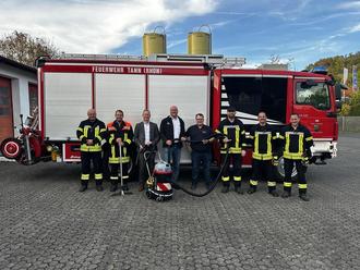 Über 1.000 Kommunen aus Hessen, Thüringen, Rheinland-Pfalz und Baden-Württemberg, die Mitglied der SV SparkassenVersicherung KRISTALL (Kommunale Risiko Steuerungs Allianz) sind, wurden zur diesjährigen Mitglieder- und Informationsveranstaltung am 11. September in Erfurt eingeladen. Im Rahmen dieser Veranstaltung wurden 3 Wasser- und Schlammsauger „Heros“ verlost, wobei der Bürgermeister Mario Dänner aus Tann (Rhön) im Landkreis Fulda einer der glücklichen Gewinner war. Bei einem Ortstermin letzten Mittwoch im Feuerwehrhaus in Tann übergaben Niko Bernhardt, Direktionsbevollmächtigter für Feuerwehrförderung bei der SV SparkassenVersicherung, und Thorsten Orf von der SV Generalagentur Andreas Bräutigam & Team den Gewinn an Bürgermeister Dänner und Vertreter der Freiwilligen Feuerwehr. Der „Heros“-Sauger im Wert von rund 1.500 Euro, der speziell für Feuerwehren und den Katastrophenschutz entwickelt wurde, wurde mit großer Freude entgegengenommen.