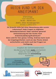 | Hilfen zum Arbeitsmarkt (monatlich) | Dienstag | 16:30 – 18:00 Uhr |