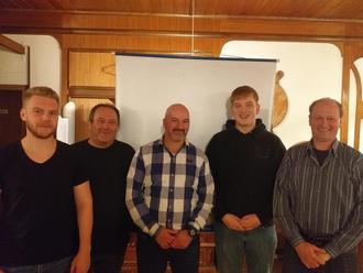 Jugendwart Tim Glotzbach, 2. Vorsitzender Peter Ditzel, 1. Vorsitzender Andreas Friedrich, Schriftführer Leon Wolf und Kassenwart Stefan Gensler.