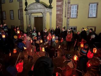 Zum Schluss zog ein Teil der Kinder mit ihren Familien durch die Stadt zum Schloss, wo es die alljährliche Martinsbrezel gab.