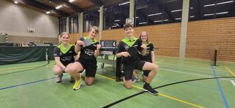 Strahlende Sieger nach gelungenem Heimsieg. Unsere U 19 Mannschaft: Emma Kirchner, Marius Lehmann, Friedrich Krausgrill und Greta Cayenne Orf