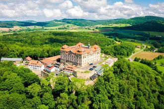 Landmarke in der hessischen Rhön: Auf einer rund 500 Meter hohen Kuppe gelegen, ist Schloss Bieberstein von weitem sichtbar und bietet Lernenden und Lehrenden eine spektakuläre Aussicht.