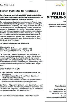 Der „Tanner Adventskalender 2022“ ist ein voller Erfolg.