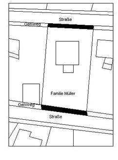 | Familie Groß hat für den schwarz markierten Teil des Gehweges in jedem Jahr den Winterdienst durchzuführen. |