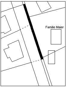 | Zusätzlich muss jedoch der Einmündungsbereich der kreuzenden Straße, wie in der nebenstehenden Skizze dargestellt, jeweils von der Familie Schulz bzw. Maier von Schnee und Eis geräumt werden. |