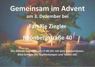 Auch in diesem Jahr laden Menschen in Theobaldshof und Knottenhof wieder zu „Gemeinsam im Advent“ ein. Die Abende finden jeweils mittwochs um 17.00 Uhr statt. Pfarrer Inerle bzw. Vikar Haarmann werden dabei mit einem geistlichen Impuls den Abend eröffnen. Anschließend gibt es heiße Getränke, kleine Leckereien und viele Gespräche.